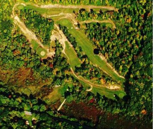 a cross country ski trail winding its way back and forth across the side of the hill. The attempt at a golf